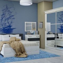 Модный урбанистический дизайн и светлые декоры. Все модули можно собрать в готовую композицию, скрепить между собой, получив жёсткую конструкцию. Тумбы под ТВ может быть укомплектована подсветкой, которая эффектно смотрится в интерьере и подчёркивает широкую нишу, свободную от перегородок. Тумба под ТВ подготовлена для прокладки проводов телевизора и медиа-техники. Большинство фасадов освобождены от лицевой фурнитуры, а ручки на пеналах выполнены из алюминия.