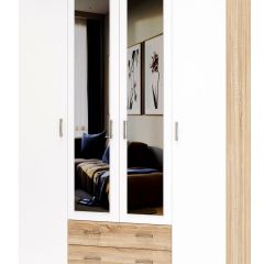 Комбинированный 4-створчатый шкаф с зеркалами, с 2-мя ящиками на роликовых направляющих.